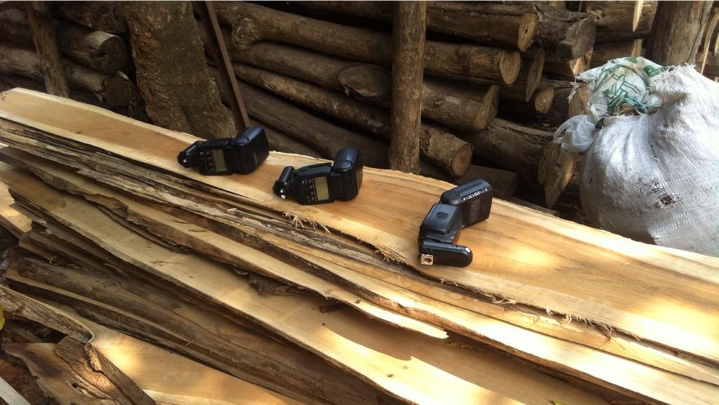 | Lampu-lampu kilat yang akan kami pegangi selama pemotretan. |