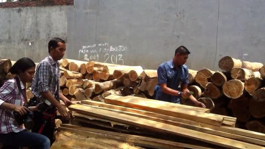 | Salah satu tempat jual beli kayu gelondongan di Klender. |