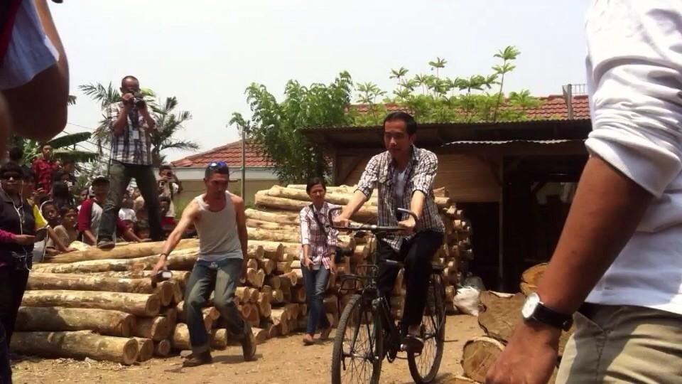 Begitupula dengan rail. Tak ada waktu dan tempat yang cukup untuk mempersiapkan rel sehingga akhirnya Ijar kembali memerintahkan Ratih dan saya untuk memegangi flash, kali ini sambil berjalan mengikuti presiden terpilih Joko Widodo mengendarai sepeda.
